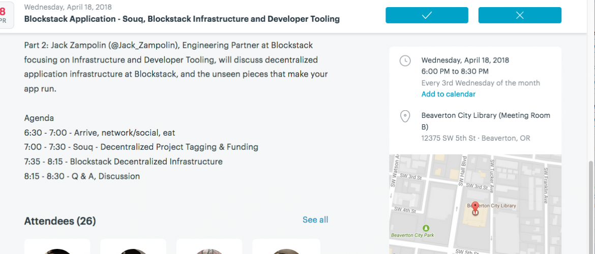So, if you are interested in learning more about Blockstack, Souq and listening to a Blockstack Engineering Partner – Jack Zampolin – muse about Blockstack, and you are in Portland, Oregon, please reach out to Blockstack Portland and join the group. Thanks again, and go Blockstack!