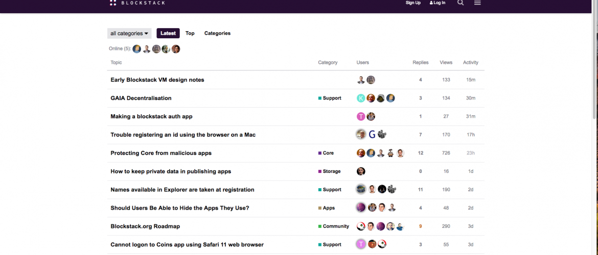 Blockstack’s Forum (www.forum.blockstack.org screenshots):