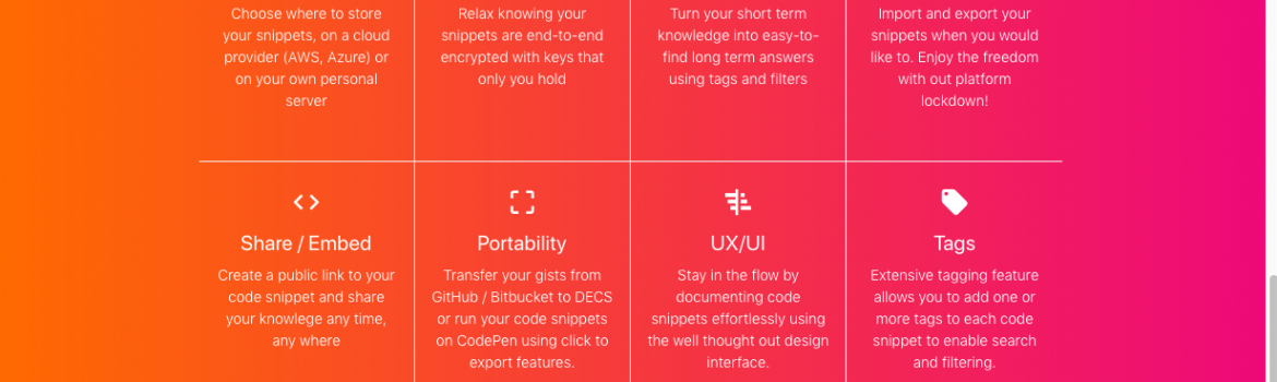 In the creators own words: DECS is “Decentralised Encrypted Code Snippets organiser for developers.“