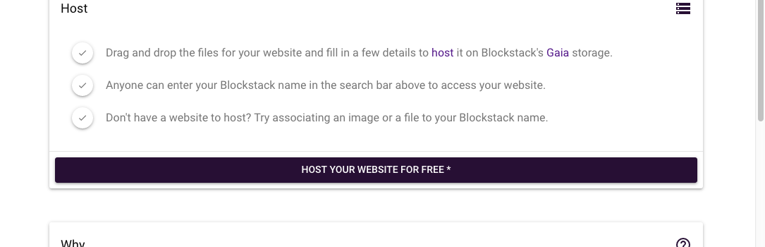 - Storage – use Blockstack’s Gaia, IPFS or other storage options – website creator can choose
